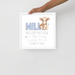 Hey Little Moo – Customisable Blue Gingham Calf Birth Print (Framed Square) | Little Letter Lane x Gingham Edit