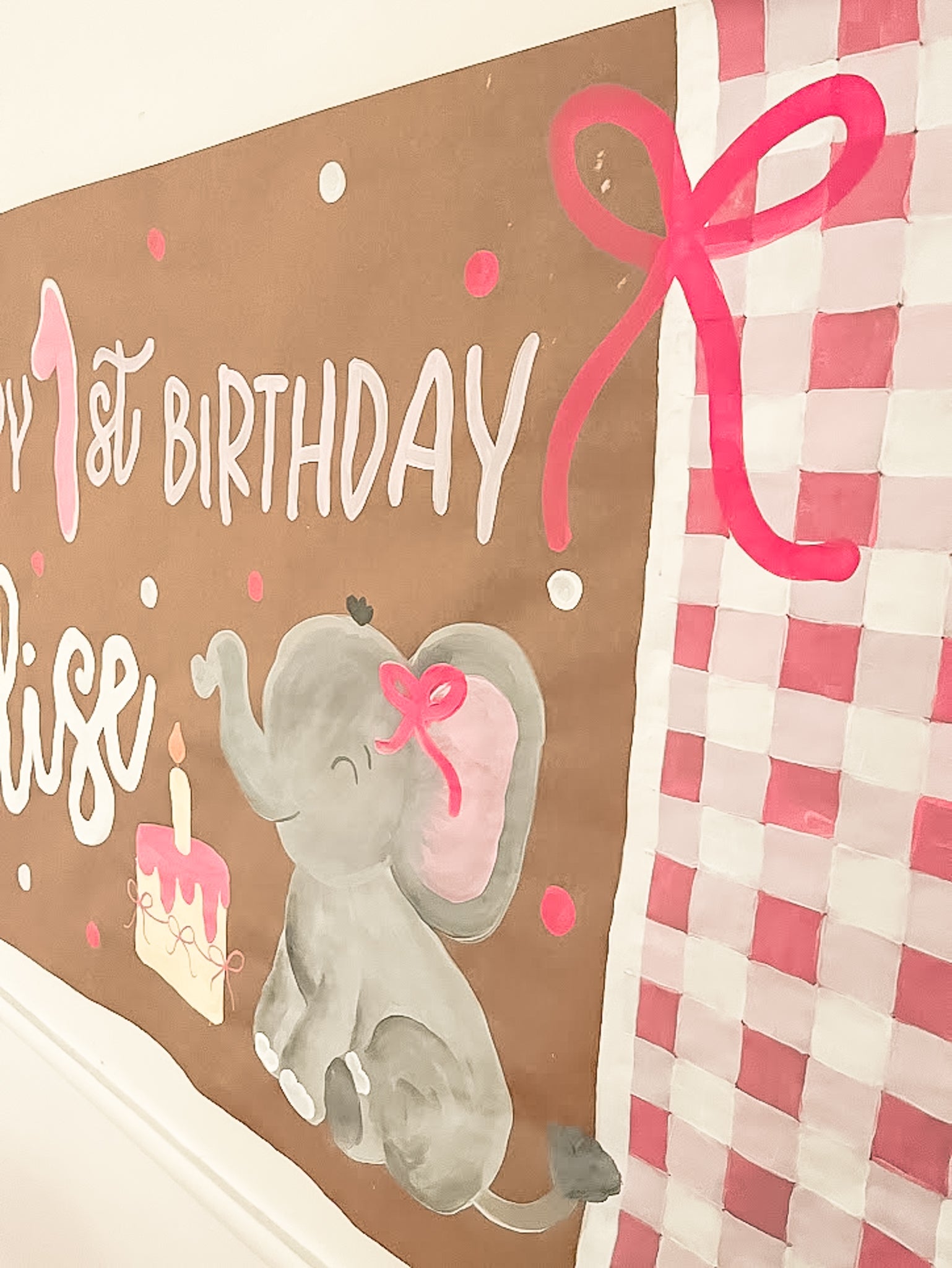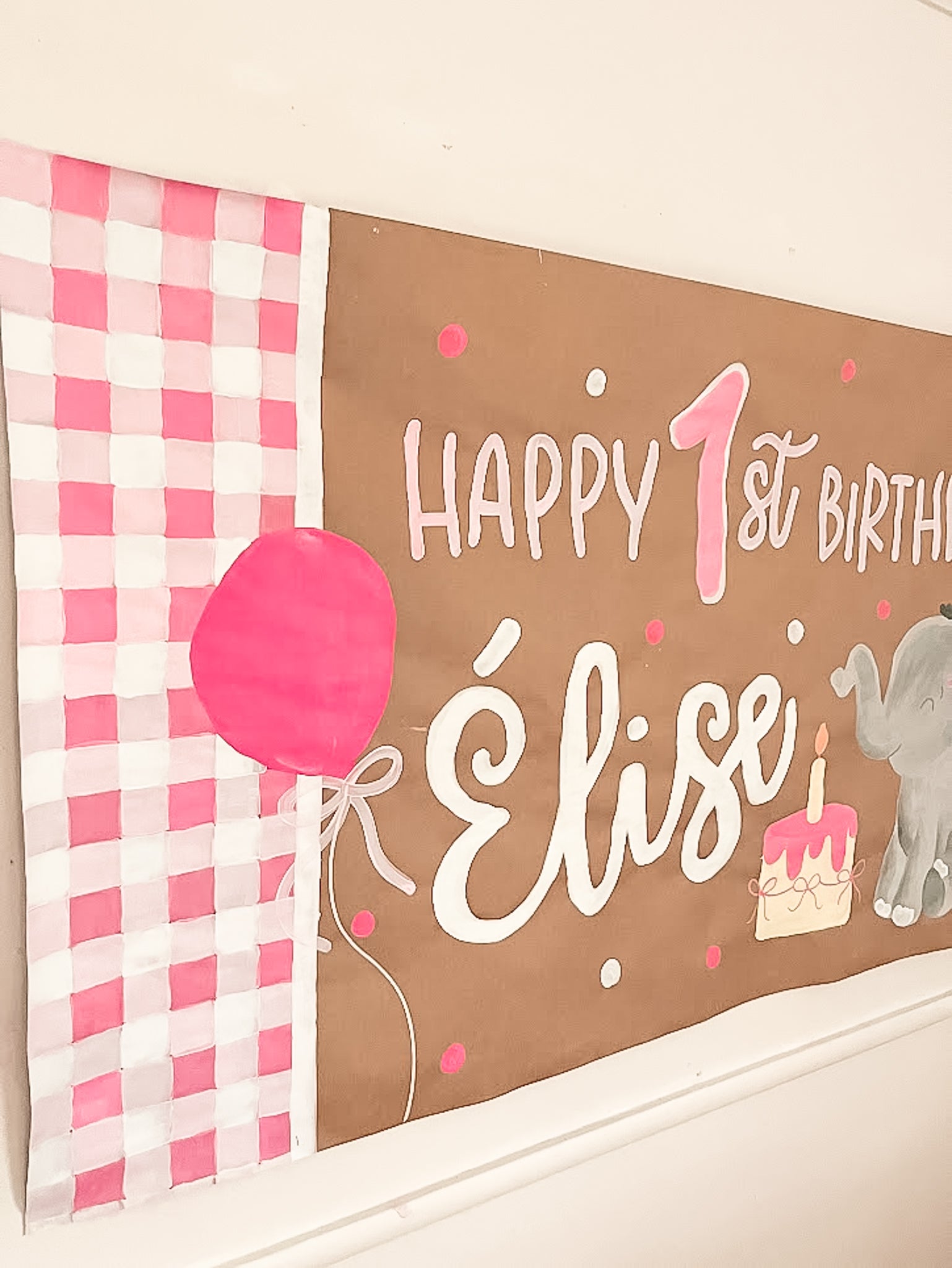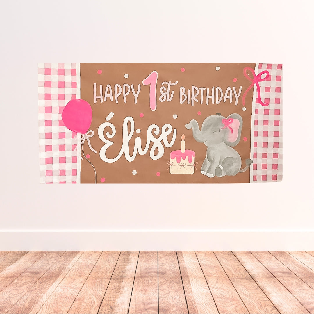 Bright, happy, and full of gentle charm, the Pink Gingham Elephant Birthday Banner brings a touch of wonder to any celebration.