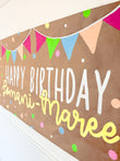 Each banner is fully customisable — personalise the name, message, and colour palette to suit your occasion. Whether it’s a backyard birthday, school celebration, or festive get-together, this banner keeps things cheerful, handmade, and one-of-a-kind.